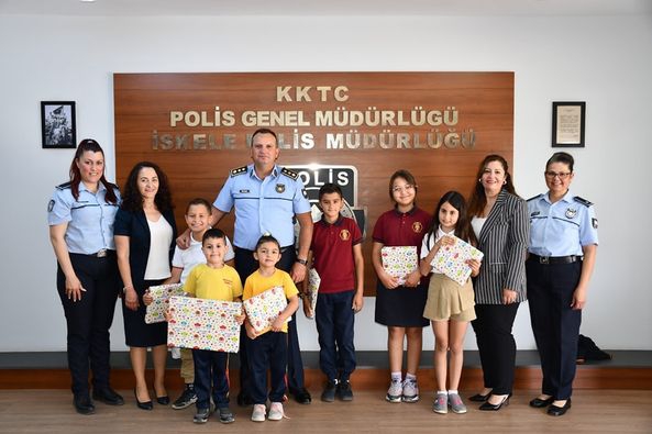Girne ve İskele Bölgesi ilkokullarından oluşan öğrenci heyetleri, 23 Nisan Ulusal Egemenlik ve Çocuk Bayramı dolayısıyla, Girne ve İskele Polis Müdürlüklerini ziyaret etti.