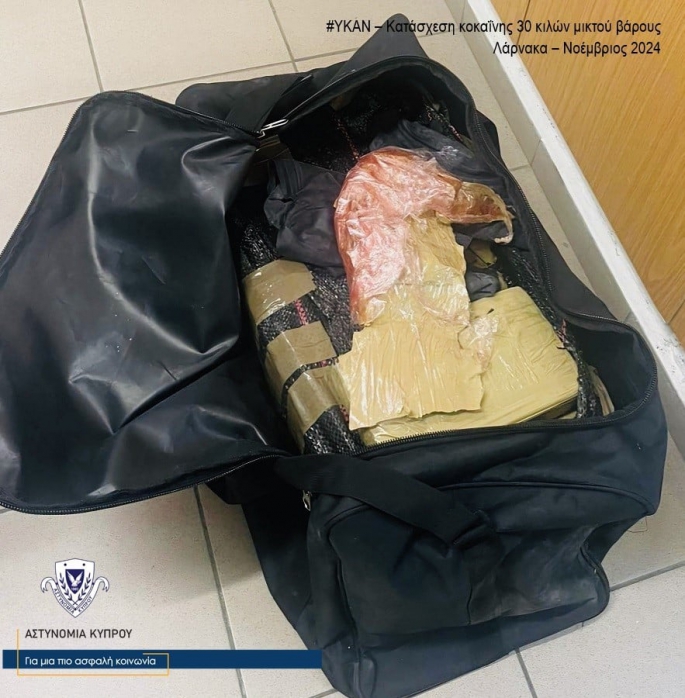 “Sigmalive” haber sitesine göre, Rum Narkotik Şube polisleri, bir ihbarı değerlendirerek, konteyner içerisinde bulunan el bagajında, brüt ağırlığı 30 kilo olan kokain tespit etti.