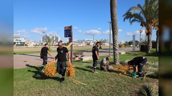 Belediye’den yapılan açıklamaya göre, İskele Belediyesi Halk Plajı’ndaki hurmaları budayan belediye ekipleri 15 Kasım Cumhuriyet Bayramı’nda ikram edilmek üzere hurmaları olgunlaşmaları için özel bir alanda beklemeye aldı.
