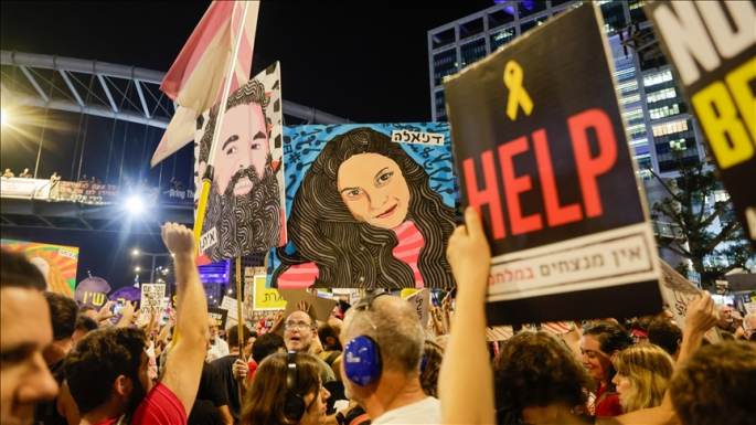 İsrail'de onlarca kişi, Gazze'deki Filistinli gruplarla esir takası anlaşması talebiyle gösteri yaptı.