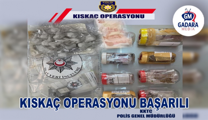 18.10.2022 tarihinde, saat 11:00 sıralarında, Narkotik ve Kaçakçılığı Önleme Müdürlüğü ekipleri tarafından Lefkoşa ve Girne’de gerçekleştirilen operasyon (Kıskaç Operasyonu) kapsamında; satışa hazır paketler haline getirilmiş yaklaşık 25 gram ağırlığında kokain, yaklaşık 13 gram ağırlığında hintkeneviri türü uyuşturucu olduğuna inanılan madde, içerisinde tütün ile karışık uyuşturucu madde olduğuna inanılan bir adet ucu yanık sarma sigara, üzerinde uyuşturucu madde kalıntısı olduğuna inanılan iki adet öğütücü, iki adet hassas terazi ve iki adet banknot ile uyuşturucu madde satışından elde edildiğine inanılan 23,600 TL, 195 Euro ve 20 Stg nakit para bulunarak emare olarak alınmıştır. Operasyon kapsamında zanlı olarak görülen T.C.Y. (E-23), E.T.V.(E-21), B.A.(E-22) ve T.Y.(E-19) tutuklanmış olup, soruşturma devam etmektedir.