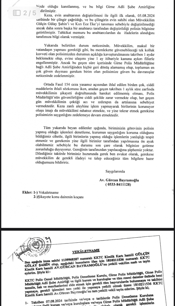 WhatsApp ihbar hattımıza gelen bu kez oldukça çarpıcı bir şikayet! Ece Eke isimli vatandaş, kısa süre önce KKTC'de satın aldığı evinin, bir önceki sahibi tarafından gasp edildiğini iddia ediyor. Haziran ayında tapusunu aldığı evin anahtarının değiştirildiğini ve kendisinin evine giremediğini belirten Eke, evin eski sahibinin damadı tarafından anahtarların değiştirilerek gasp edildiğini ileri sürdü.