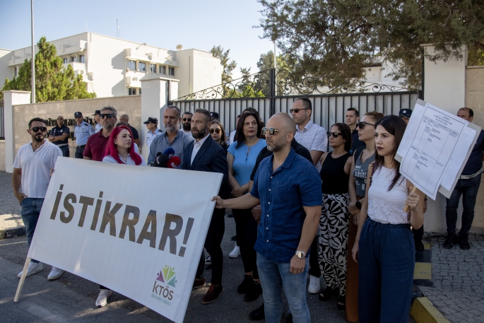 KTÖS Başkanı Mustafa Baybora da, "Kıbrıs Türk toplumuna dayatılan siyasi, ekonomik ve kültürel dönüşüm politikalarının merkezinin TC Lefkoşa Büyükelçiliği olduğu" iddiasında bulunarak, bundan dolayı burada açıklama yaptıklarını söyledi.