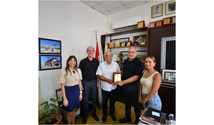 Lefke İstiklal İlkokulu Aile Birliği Başkanı ve yönetim kurulu üyeleri, Lefke Belediye Başkanı Aziz Kaya’yı ziyaret ederek, okula yaptığı katkılardan dolayı teşekkür plaketi sundu.