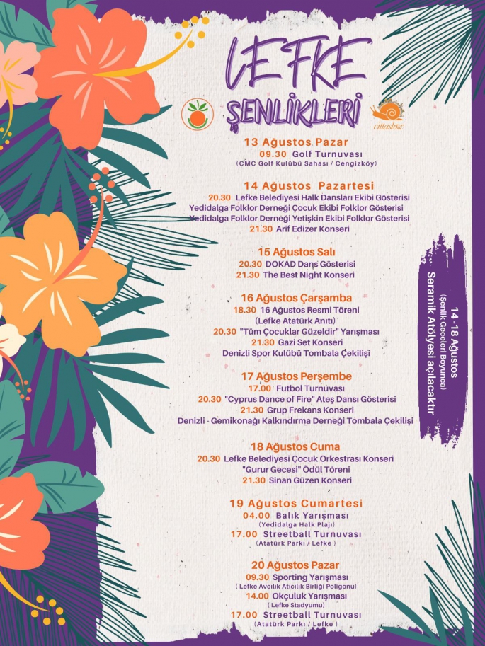 Lefke Şenlikleri 13 Ağustos Pazar günü başlayacak 20 Ağustos Pazar günü sona erecek.