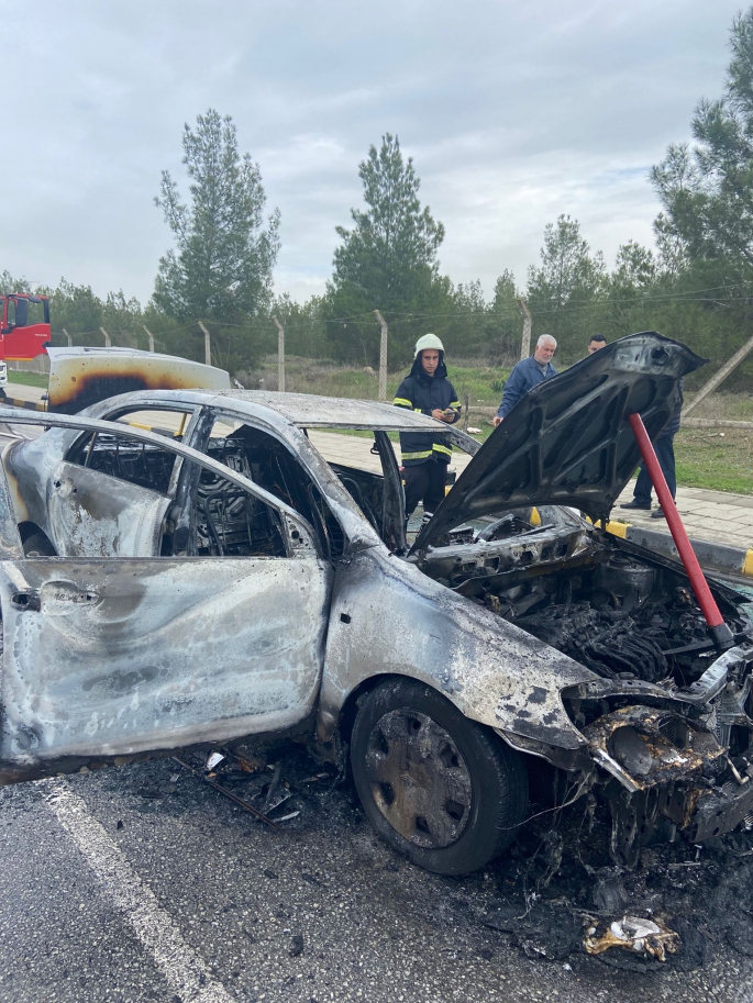 Lefkoşa Ortaköy’de meydana gelen trafik kazası sonrası bir araç tamamen yandı.