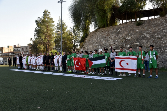 Lefkoşa Yusuf Kaptan Sahasında oynanan karşılaşmayı, Cumhurbaşkanı Vekili Cumhuriyet Meclisi Başkanı Zorlu Töre de izlerken, maç öncesinde, “Kıbrıs Türkü mazlum Filistin halkının yanındadır” yazılı pankart açıldı, Gazze’de ve 6 Şubat depreminde hayatını kaybedenler için saygı duruşunda bulunuldu ve her iki ülkenin milli marşları okundu.