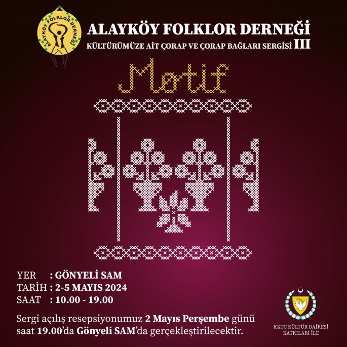 Alayköy Folklor Derneği’nin “Motif Kültürümüze Ait Çorap ve Çorap Bağları III” sergisi 2 Mayıs Perşembe günü saat 19.00’da açılıyor.