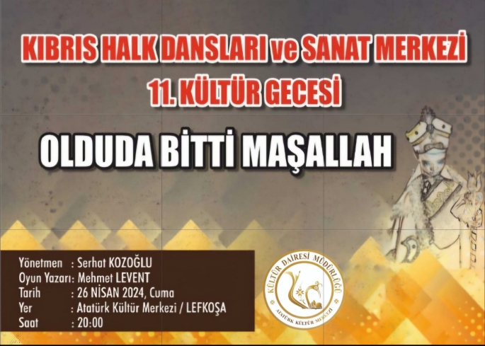 Kıbrıs Halk Dansları ve Sanat Merkezi, kültür gecesi kapsamında "Oldu Da Bitti Maşallah" adlı folklorik skeç oyununu izleyicilerle buluşturuyor.