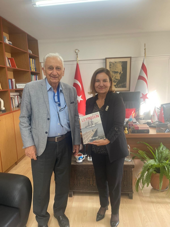 Başbakan Yardımcılığı Turizm Kültür ve Çevre Bakanlığı’na bağlı Kültür Dairesi Müdürü Şirin Zaimağaoğlu’nu ziyaret eden Özay Akif Elder, yeni çıkan Leymosun isimli kitabını Zaimağaoğlu’na takdim etti.