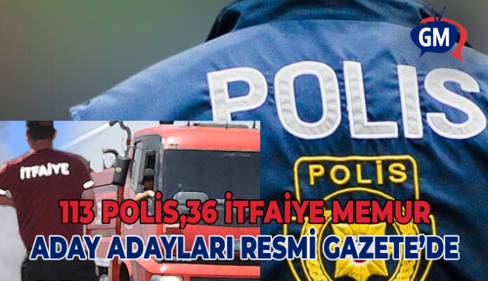 Buna göre; 113 polis ile 36 itfaiye memuru aday adayları duyuruldu.