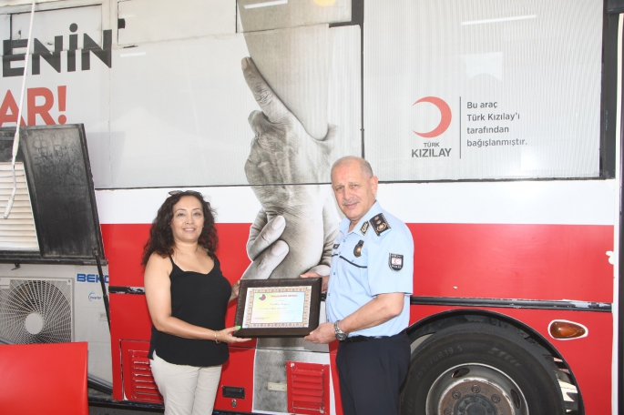Kuzey Kıbrıs Thalassemia Derneği Asbaşkanı Suziye BALKAY ise, Thalassemia hastalarının artan kan ihtiyacına yönelik Polis Teşkilatı tarafından gösterilen duyarlılık ve sosyal sorumluluktan dolayı, Polis Genel Müdürü Kasım KUNİ’ye teşekkür ederek plaket takdiminde bulundu.