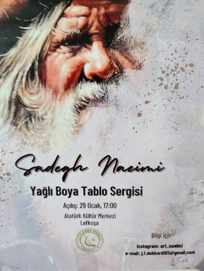 İranlı sanatçı Sadegh Naeimi'nin yağlı tablo eserleri, 29 Ocak Pazartesi Lefkoşa Atatürk Kültür Merkezi'nde sergileniyor. Sergi saat 17.00'de açılacak.