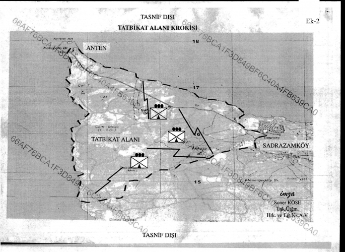Açıklamada, tatbikat bölgesinin, “Batıda; Koruçam burnu sahil yolu, doğuda; Sadrazamköy batısındaki asfalt yol ile tatil köyü arasındaki yolun batı hattı, kuzeyde; Anten/Deniz Feneri ile tatil köyüne kadar olan sahil boyu ve denizde 10 km’lik alan, güneyde; Sadrazamköy ile batı uzanımı hattının denize kadar uzanan yolun kuzeyi arasında kalan bölge” olduğu belirtildi.