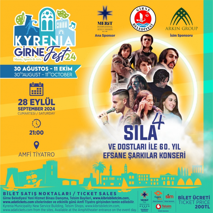 Kıbrıs Türk müzik kültürünün önemli unsurlarından Sıla-4 grubu bu akşam “Girne Arkın Group Fest24” kapsamında sahne alacak.