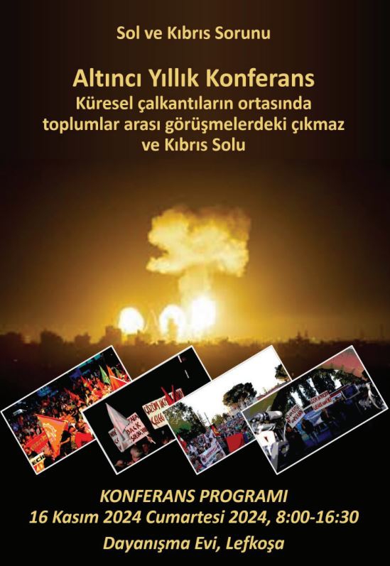 “Sol ve Kıbrıs Sorunu” isimli iki toplumlu konferans 16 Kasım Cumartesi günü Dayanışma Evi’nde düzenleniyor.