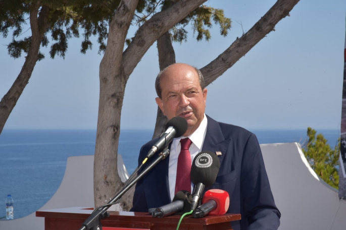 “Türkiye Cumhuriyeti’nin garantörlük hakkını kullanarak 8 Ağustos günü Türk Hava Kuvvetleri’nin garantörlük hakkıyla müdahalesi ve Rum-Yunan ikilisini püskürtmeleriyle burası destana dönüştü.” diye konuşan Tatar, Türkiye Cumhuriyeti olmadan Kıbrıs ile ilgili hiçbir anlaşmanın olmayacağını vurguladı.
