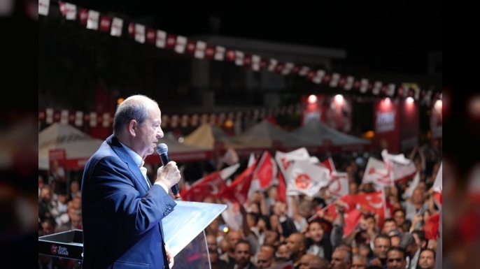 “Türkiye Cumhurbaşkanı Recep Tayyip Erdoğan yüce Meclisimize, milli iradenin toplandığı yere geldiğinde bunlar Meclise katılmadılar. Rum’u protesto edeceklerine, Rum’un zihniyetini, tutumunu kınayacaklarına anavatanın Cumhurbaşkanı’nı protesto etmediler mi? Şimdi utanmadan kalkmışlar Türkiye ile görüşüp anlaşacaklarını söyleyerek, sizleri kandırmaya çalışıyorlar. CTP’nin adayının hiç Rum’u protesto ettiğini gördünüz mü? Hiç Türk düşmanı Rum zihniyetini, Rum’un uyguladığı izolasyonu kınadığını duydunuz mu? Benim halkım zekidir, eğitimlidir, akıllıdır. Kimse Kıbrıs Türk halkını kandırabileceğini düşünmesin.”