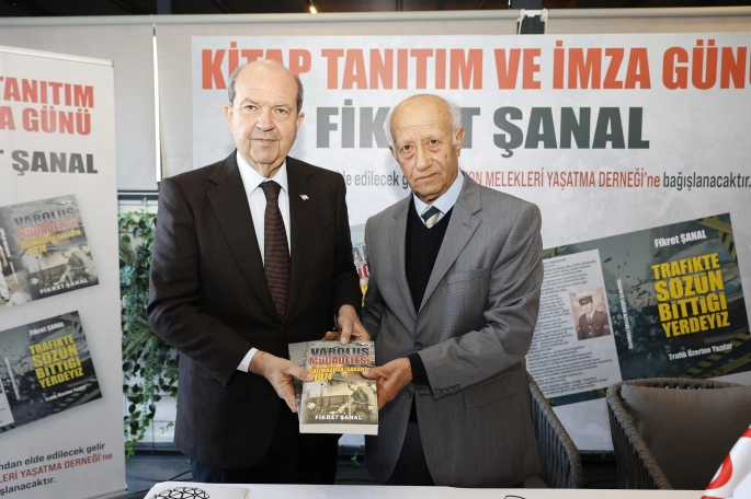 Cumhurbaşkanı Ersin Tatar, yazar Fikret Şanal’ın "Varoluş Mücadelesi" ve "Trafikte Sözün Bittiği Yerdeyiz" isimli kitaplarının tanıtım ve imza günü etkinliğine katıldı.