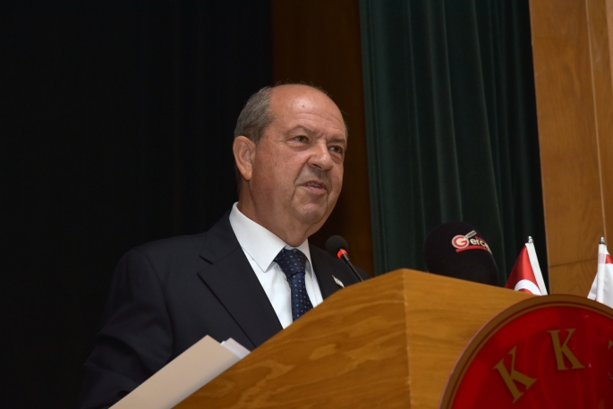 Tatar, burada yaptığı konuşmada, karşısında gördüğü tablodan dolayı gurur duyduğunu belirterek, Kıbrıs Türk halkının hukukçularının 1570’li yıllardan beri vermiş olduğu mücadeleyle bugünlere gelinebildiğini kaydetti.