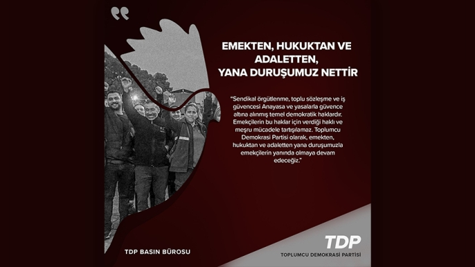 Açıklamada, sendikaya üye olma, toplu görüşme yapma ve toplu iş sözleşmesi imzalama haklarının Anayasa ve yasalarla güvence altına alınmış temel demokratik haklar olduğu vurgulanarak, bu hakların hiçbir biçimde tartışmaya açılmasının kabul edilemeyeceği belirtildi. TDP, emekçilerin haklı ve meşru mücadelesinin yanında olduğunu ve bu mücadelede çalışanlarla birlikte hareket edeceğini kaydetti.