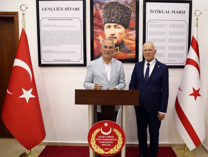 Cumhuriyet Meclisi Başkanı Zorlu Töre, Anamur Belediye Başkanı Durmuş Deniz ve beraberindeki heyeti kabul etti.