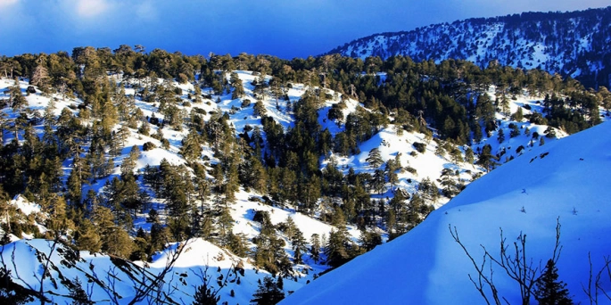 Trodos kar yağışının etkisiyle yeniden beyaza büründü.