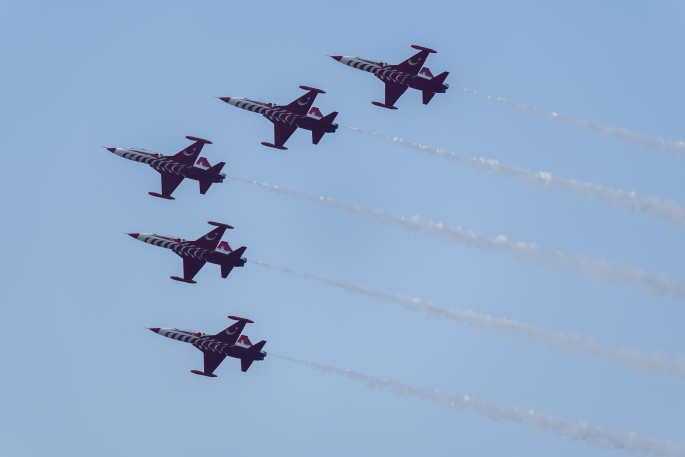 Türk Yıldızları Akrobasi Timi, Kıbrıs Barış Harekatı'nın 50'nci yıl dönümü kapsamında prova uçuşu yaptı.