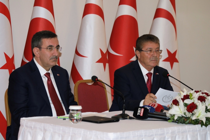 Başbakan Ünal Üstel ve Türkiye Cumhuriyeti Cumhurbaşkanı Yardımcısı Cevdet Yılmaz, Concorde Hotel’de basın toplantısı düzenledi.