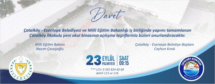 Yeni Çatalköy İlkokulu pazartesi günü Milli Eğitim Bakanı Nazım Çavuşoğlu ve Çatalköy Esentepe Belediye Başkanı Ceyhun Kırok tarafından açılacak.