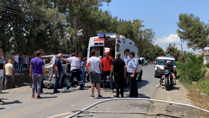 Çarpmanın etkisiyle kontrolsüzce yolun sağından çıkan EK 370 plakalı araç, bir narinciye bahçesi içerisine girip durmuştur. Kaza sonrası alev alan EK 370 plakalı araç itfaiye ekiplerinin müdahalesi ile söndürüldü. Kazada yaralanan her iki araç sürücüsü ile EK 370 plakalı araçta yolcu olarak bulunan Hamza Abbas (E-22) kaldırıldıkları Lefkoşa Dr Burhan Nalbantoğlu Devlet Hastanesinde tedavileri halen sürüyor. Soruşturma devam etmektedir.