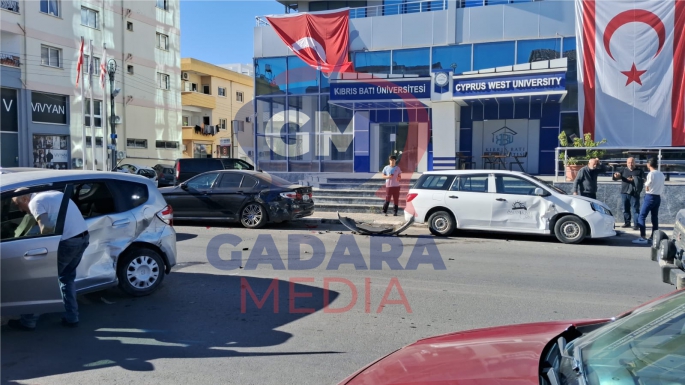 Salamis yolunda, Kıbrıs Batı Üniversitesi önünde sabah saatlerinde bir zincirleme trafik kazası meydana geldi.